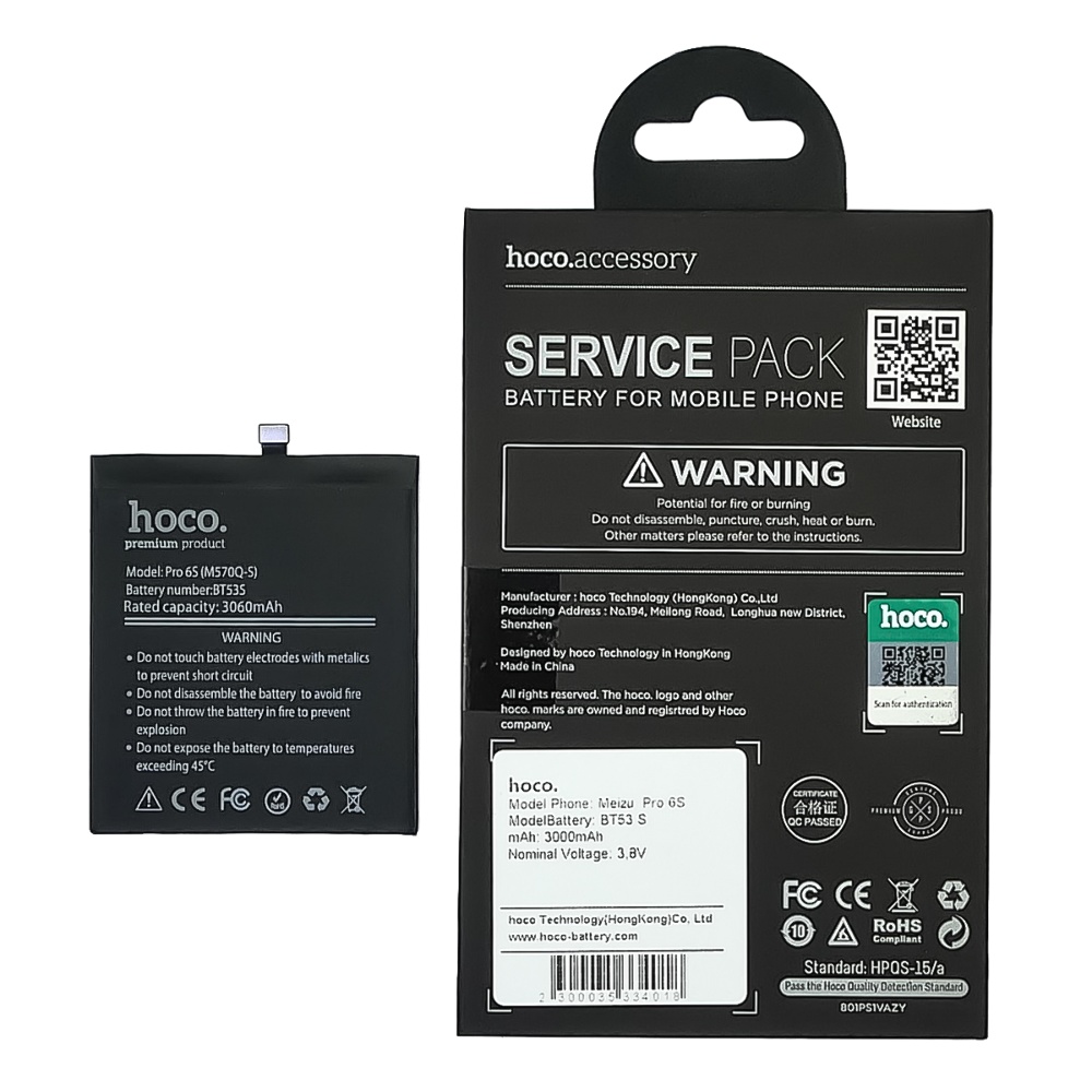 Акумулятор Hoco для Meizu BT53S (Pro 6S/ Pro 6) - це високоякісна батарея, яка спроектована для заміни старого або пошкодженого акумулятора у Вашому смартфоні. Вона забезпечує необхідне живлення Вашого пристрою, дозволяючи йому працювати довгий час без підзарядки. Акумулятор Hoco - це надійне джерело енергії для Вашого смартфона.