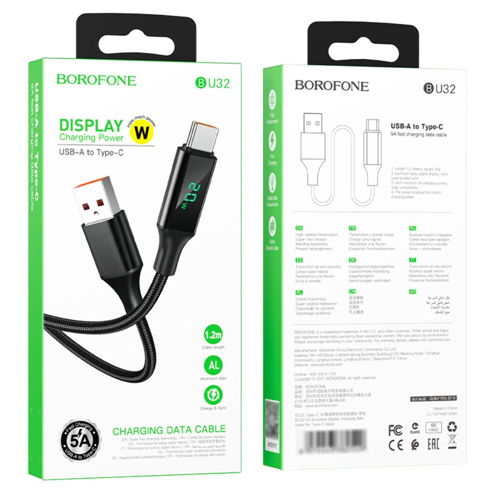 USB кабель Borofone BU32 з дисплеєм Type-C 5A 1.2m чорний