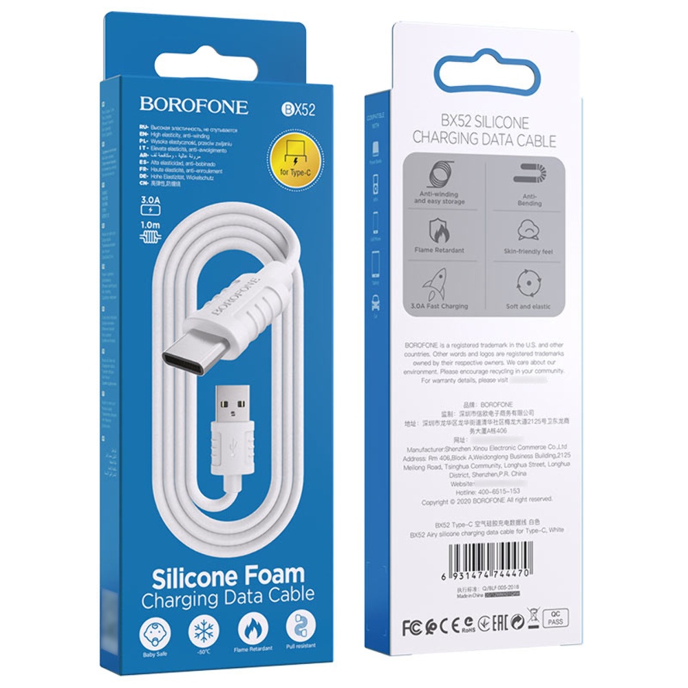 USB кабель Borofone BX52 Type-C 3A 1m білий