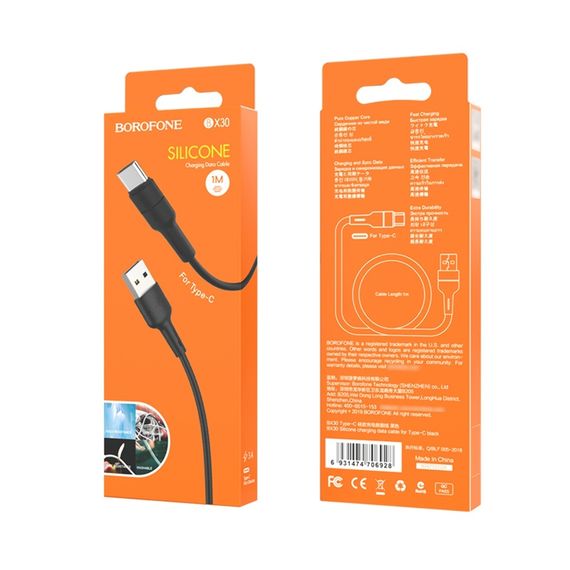 USB кабель Borofone BX30 Type-C 3A 1m чорний