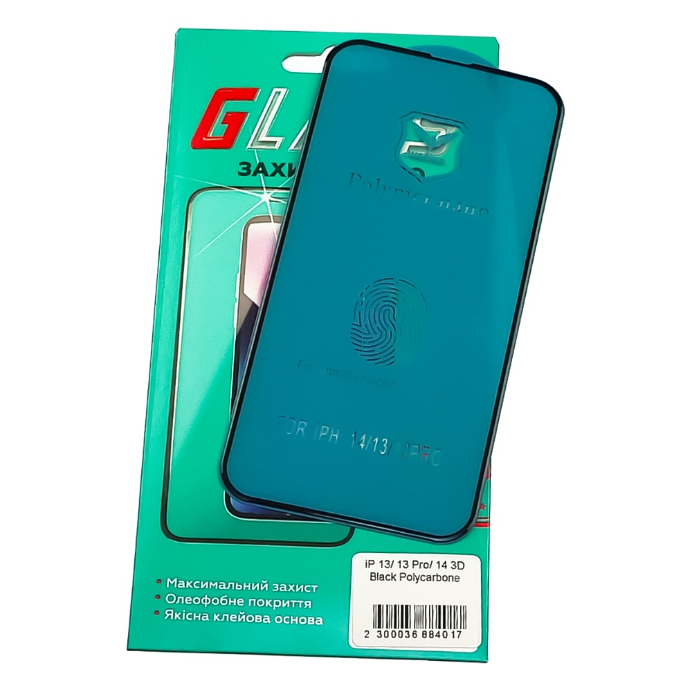Захисне гнучке скло для Apple iPhone 13/ 13 Pro/ 14 (3D чорна) Polycarbone