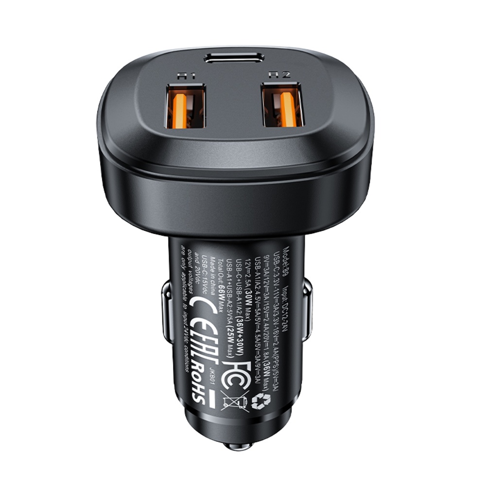 Автомобільний зарядний пристрій B9 2 USB/ 1 Type-C 5A 66W PD QC чорний
