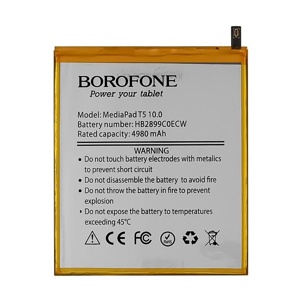 Акумулятори BOROFONE — це відмінне рішення для тих, хто шукає надійне джерело енергії для Huawei MediaPad T5 10.0/ HB2899C0ECW. З ними ваш пристрій завжди буде готовий до роботи, незалежно від обставин.