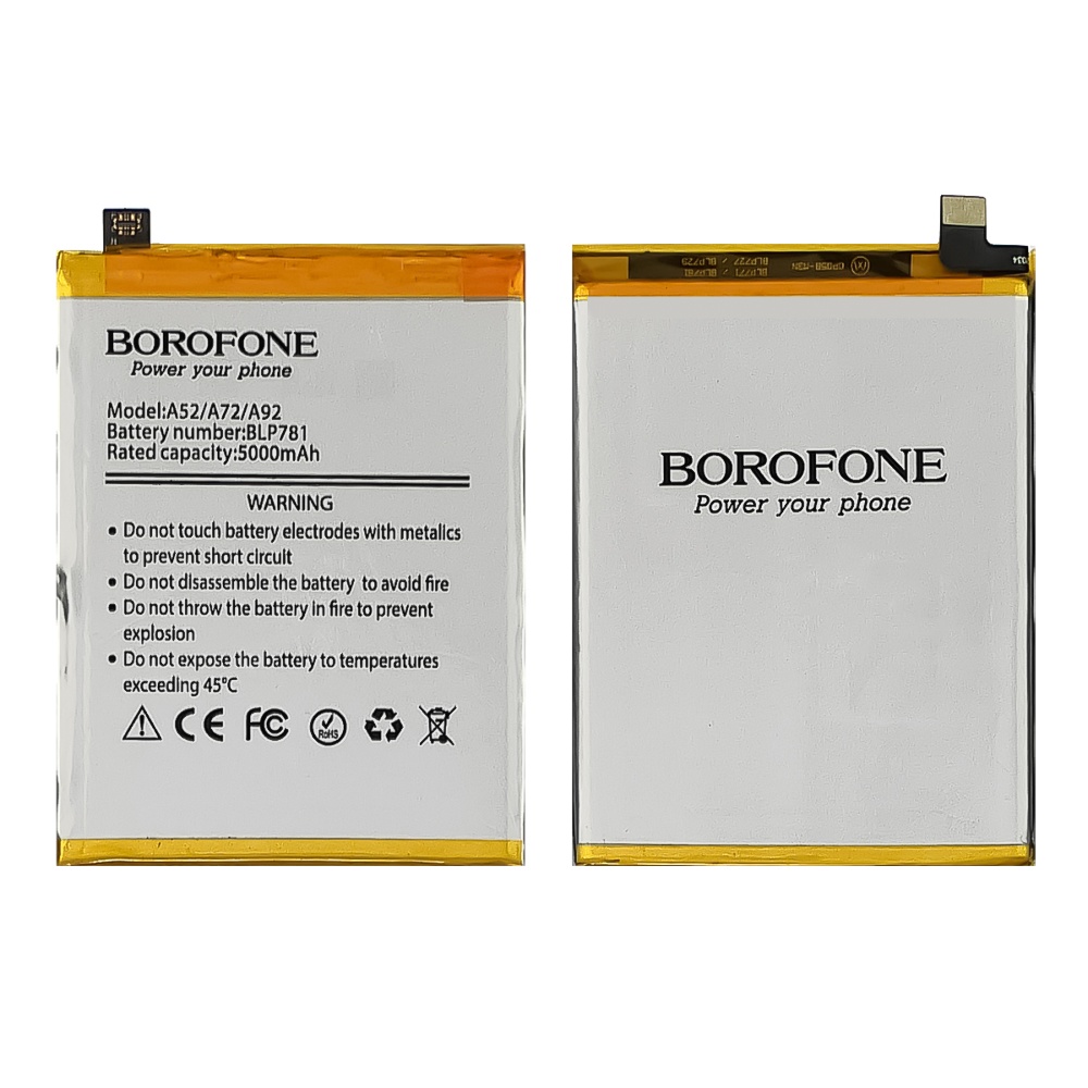Акумулятори BOROFONE — це відмінне рішення для тих, хто шукає надійне джерело енергії для OPPO BLP781 (A52/ A72/ A92). З ними ваш пристрій завжди буде готовий до роботи, незалежно від обставин.