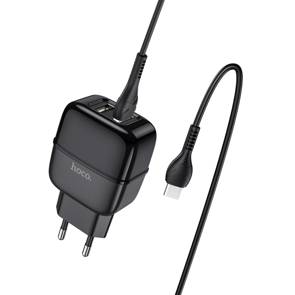 Мережевий зарядний пристрій Hoco C77A 2 USB 2.4A Type-C чорний