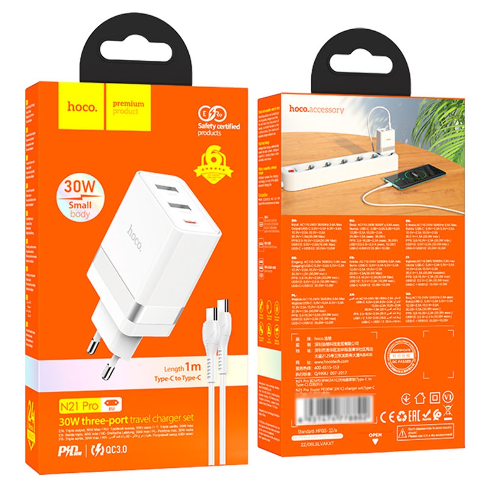 Мережевий зарядний пристрій Hoco N21 Pro PD 30W Type-C - Type-C білий