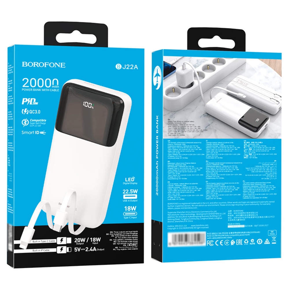 Power Bank Borofone 20000 mAh BJ22A 22.5W+PD20W білий
