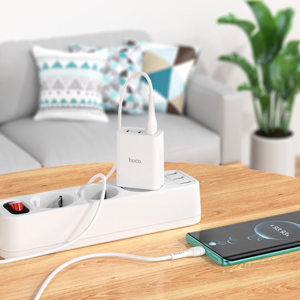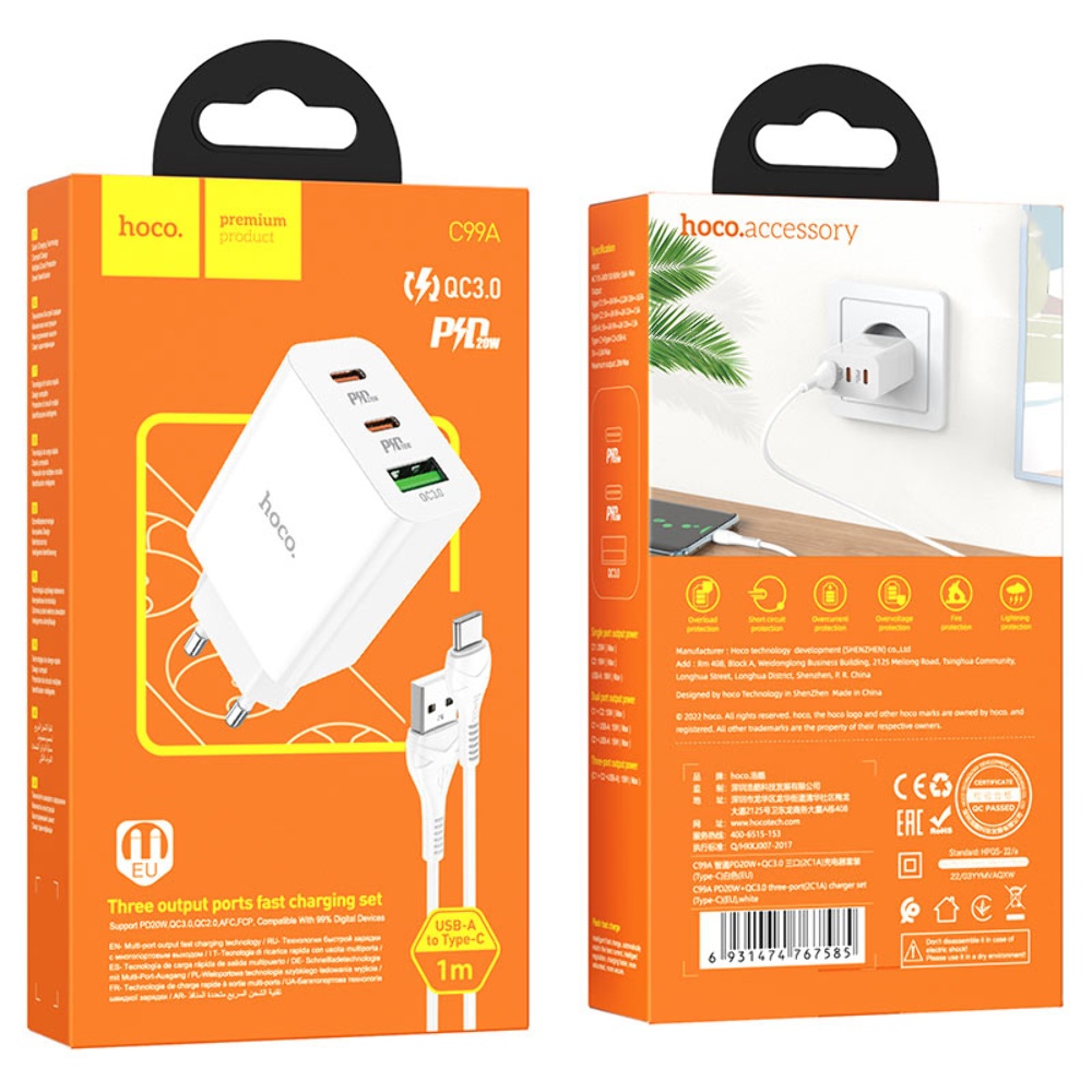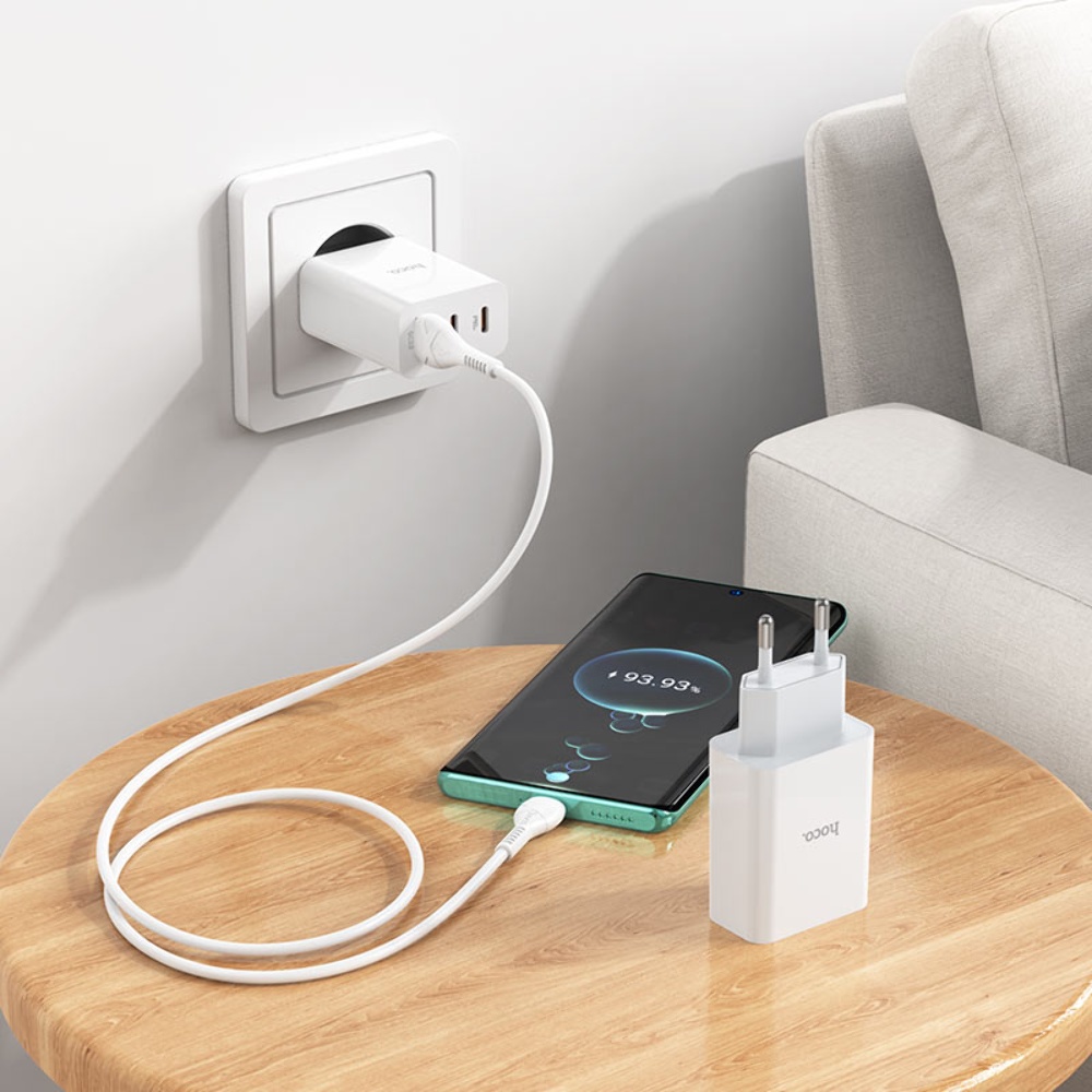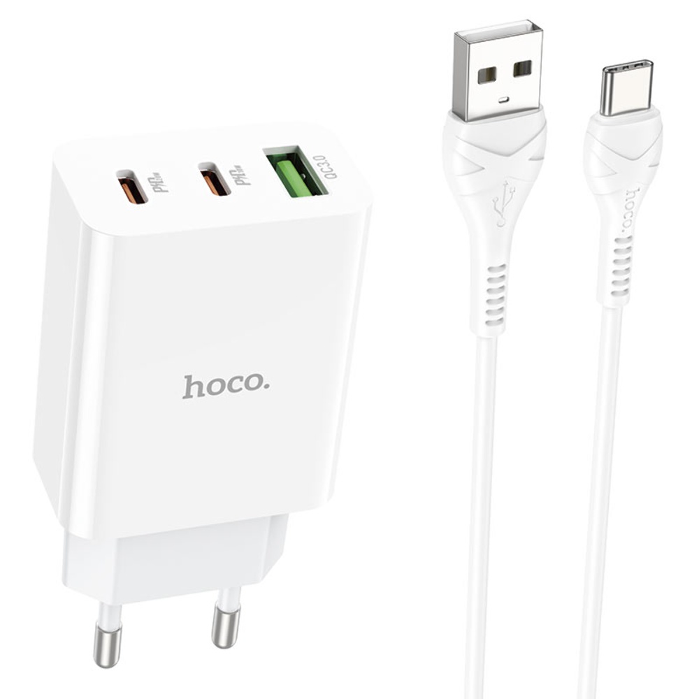 Мережевий зарядний пристрій Hoco C99A PD 20W/ 2 USB QC3 білий + Type-C кабель