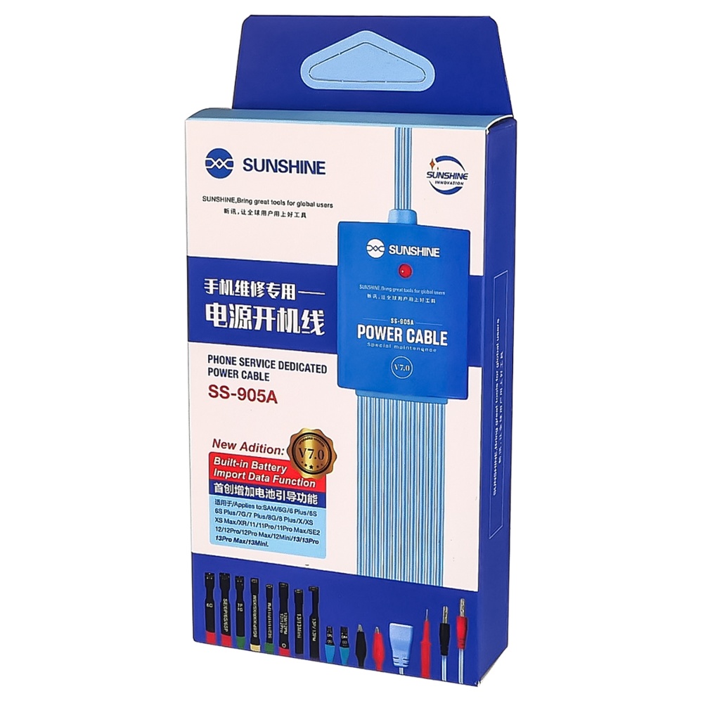 Кабелі для блоків живлення Sunshine SS-905A, з крокодилами та роз'ємами для підключення плат (iPhone 6-13 Pro Max/ Android)