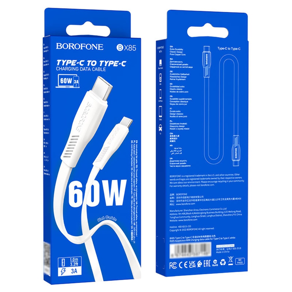 USB кабель Borofone BX85 Type-C to Type-C PD 60W 1m білий