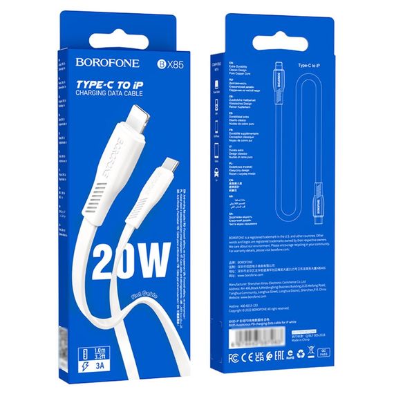 USB кабель Borofone BX85 Type-C to Lightning PD 1m білий
