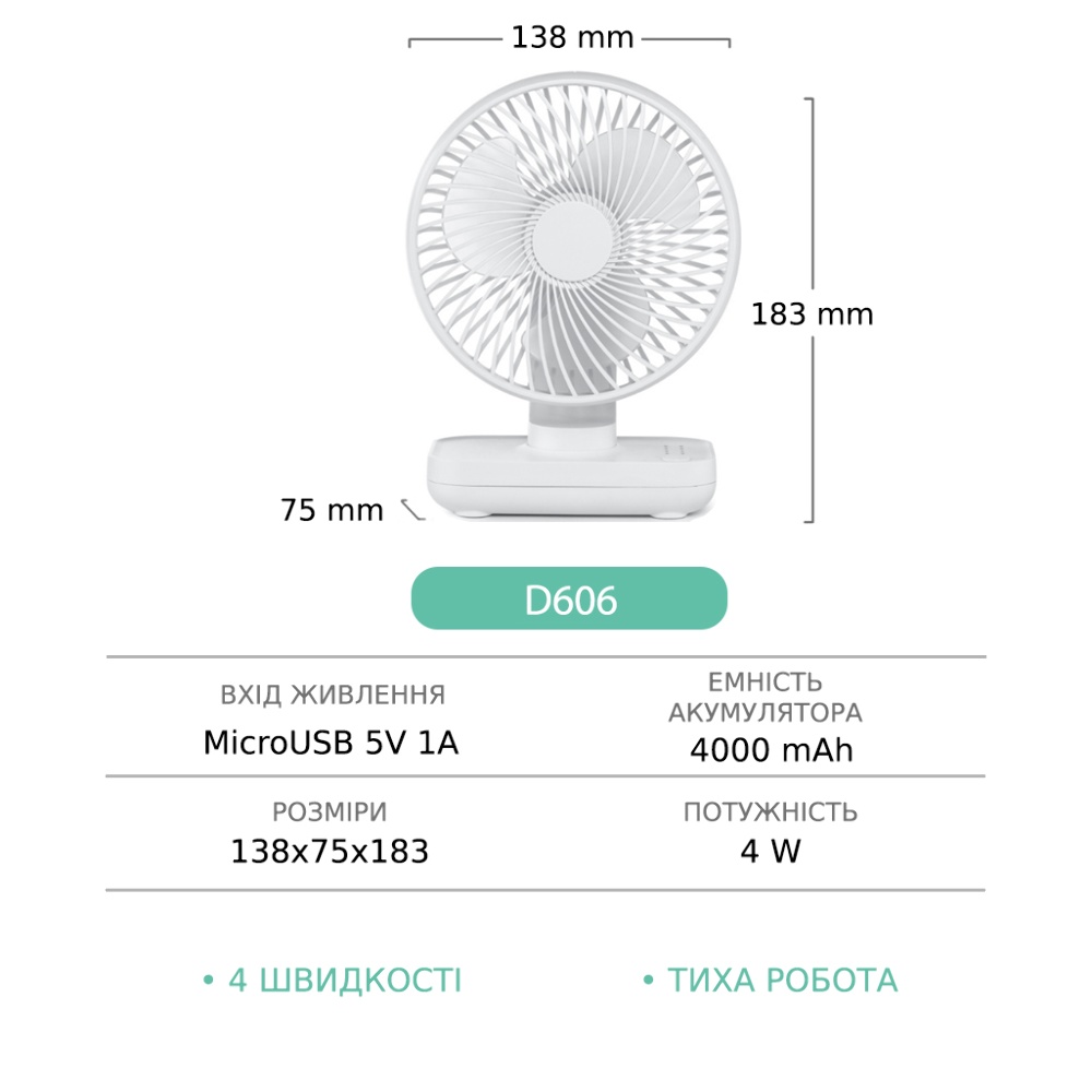 Настільний вентилятор GXQC D606 білий