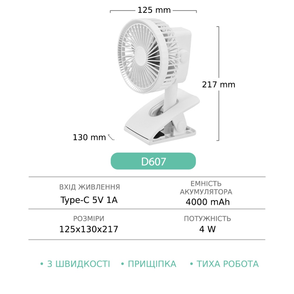 Настільний вентилятор GXQC D607 з прищіпкою білий