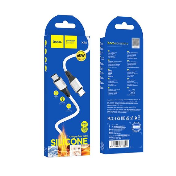 USB кабель Hoco X86 Type-C to Type-C PD 60W 1m білий