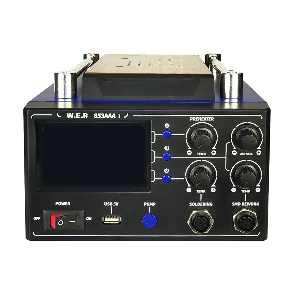 Паяльна станція WEP 853AAA-I, із вбудованим вакуумним сепаратором 9" (20 x 11 см), фен, паяльник, USB 5V