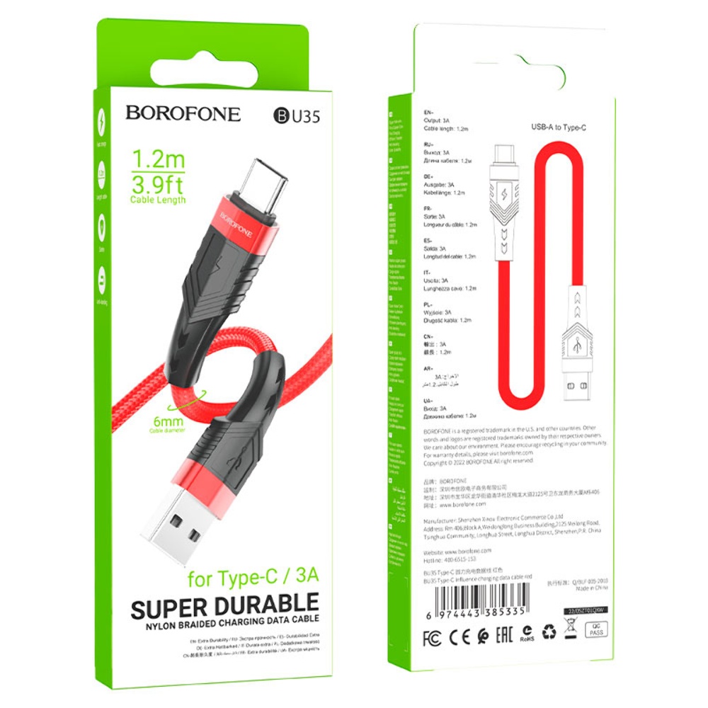 USB кабель Borofone BU35 USB to Type-C 1.2m червоний