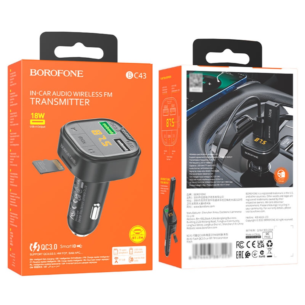 Модулятор Borofone 2 USB BC43 чорний з функцією FM-модулятора