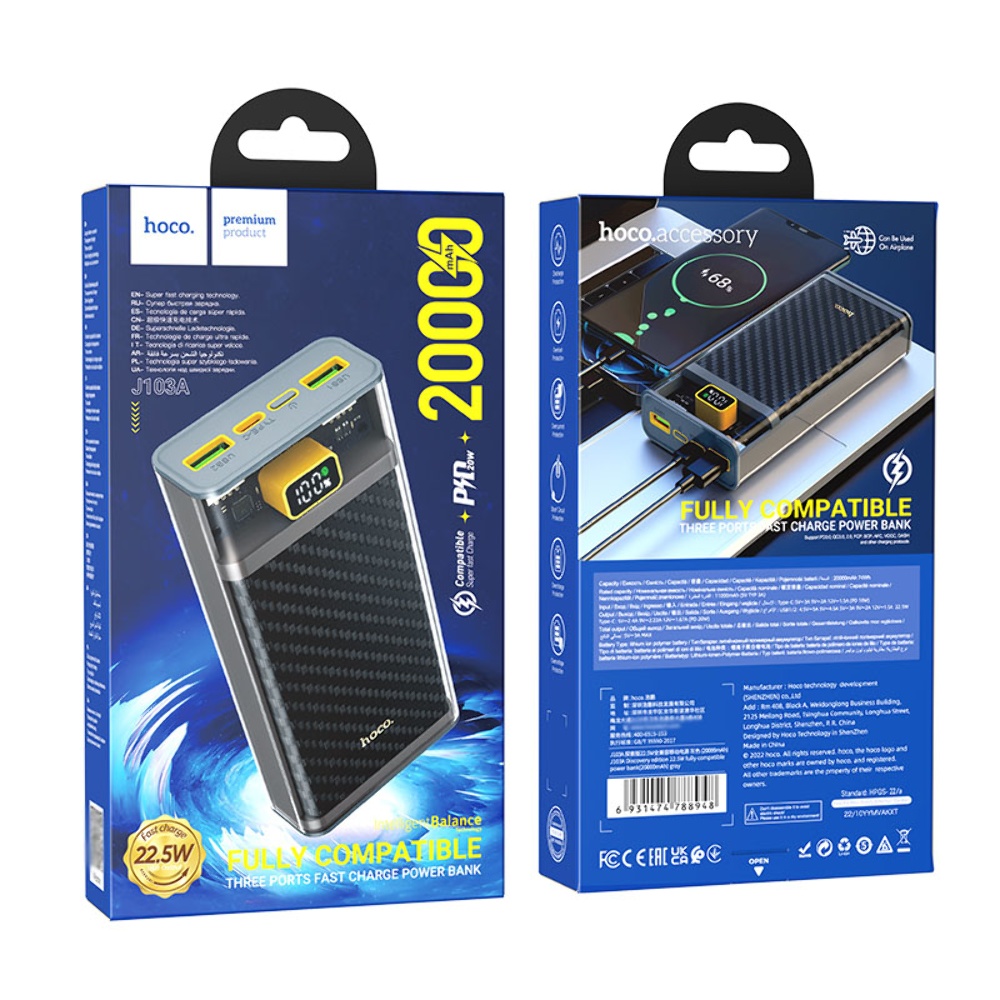 Power Bank Hoco J103A (сірий) - це надійний та потужний портативний акумулятор, який забезпечить вашим пристроям додаткову енергію за будь-яких умов. З його високою ємністю і швидкою зарядкою, він стане незамінним аксесуаром для зарядки ваших гаджетів.