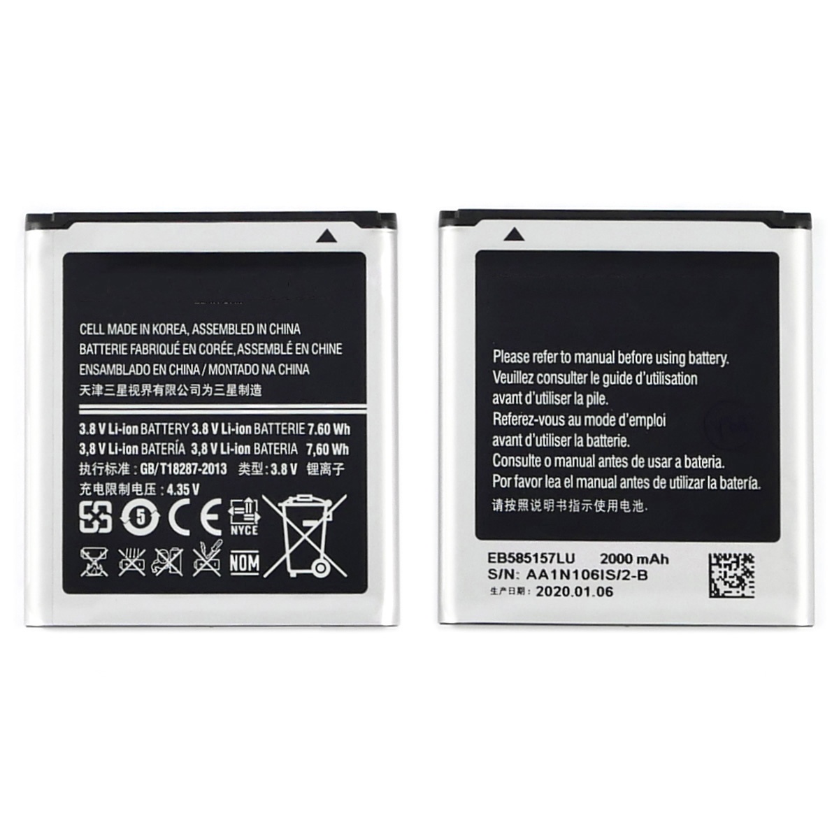 Акумулятор для Samsung i8552/ i8550 Galaxy Win/ G355H Galaxy Core 2 Duos/ i8530/ i8730 (EB585157LU) 2000 mAh оригінал TW