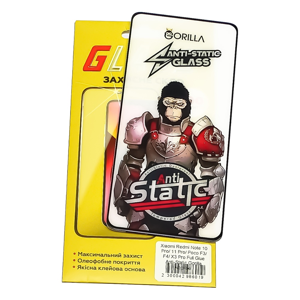 Захисне скло для Xiaomi Redmi Note 10 Pro/ 11 Pro/ Poco F3/ F4/ X3 Pro Full Glue Anti-Static (0.3 мм, чорне) Gorilla