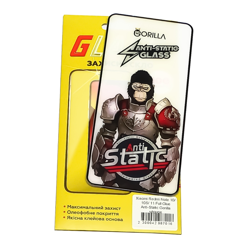 Захисне скло для Xiaomi Redmi Note 10/ 10S/ 11 Full Glue Anti-Static (0.3 мм, чорне) Gorilla
