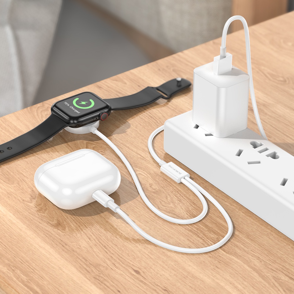 Бездротовий адаптер Borofone BQ22 2в1 USB to Lightning/ iWatch 1m білий
