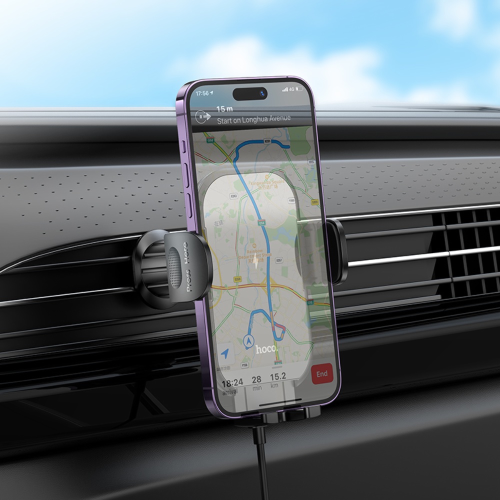 Автотримач HOCO HW4 з функцією бездротової зарядки чорний