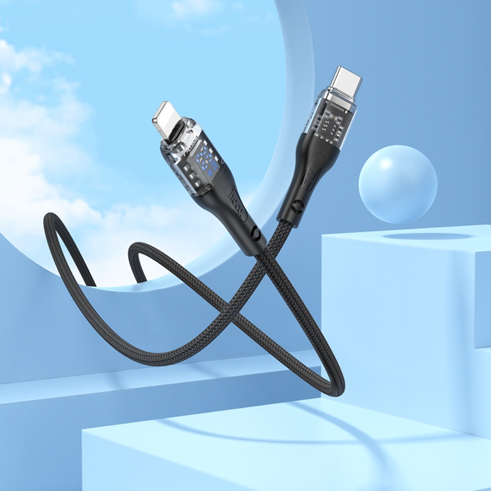 USB-кабель Hoco U115 Type-C to Lightning 1.2m з дисплеєм чорний
