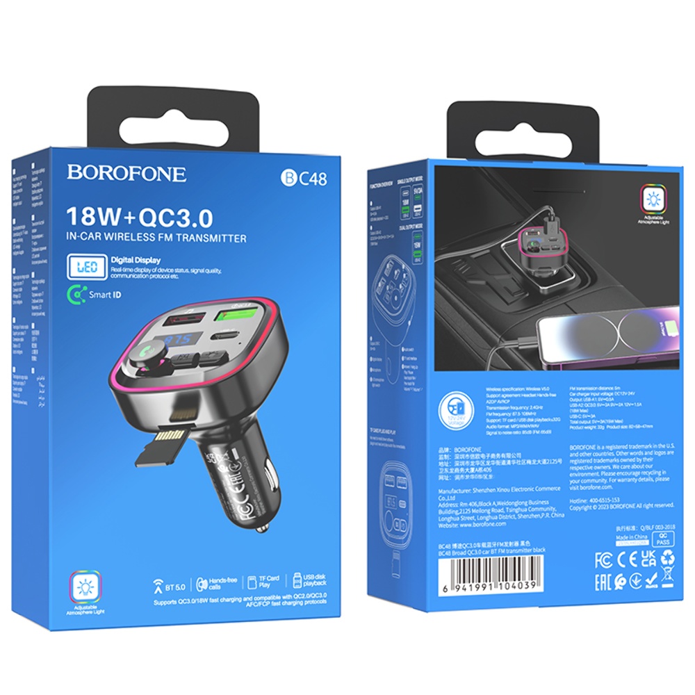 Модулятор Borofone 2 USB BC48 Type-C/ QC з функцією FM-модулятора (USB/ TF card/ Bluetooth) чорний