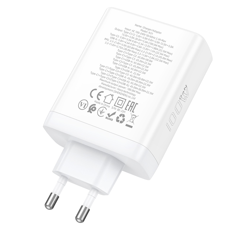 Мережевий зарядний пристрій Hoco N31 PD100W 3C1A білий
