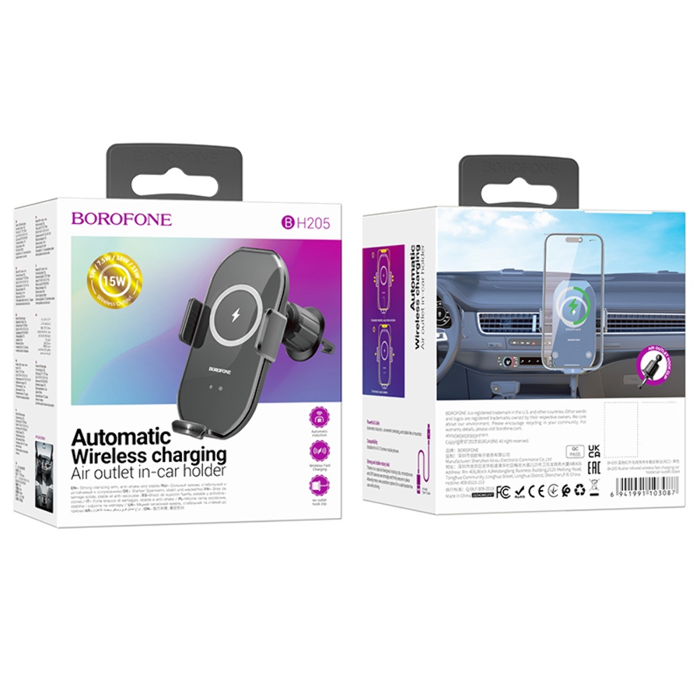 Автотримач Borofone BH205 з бездротовою зарядкою 15W чорний