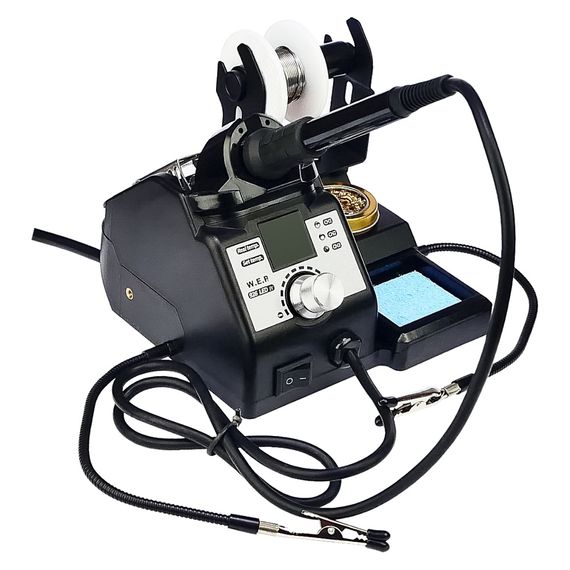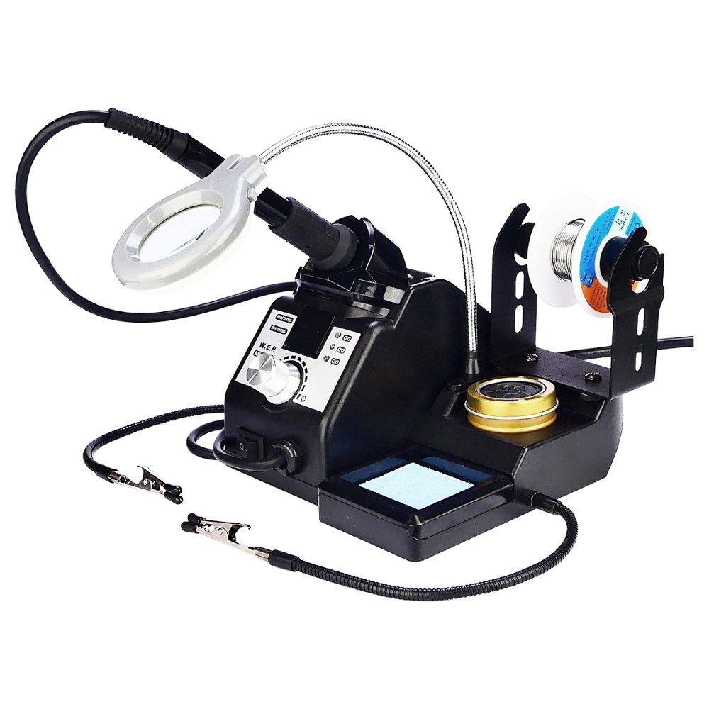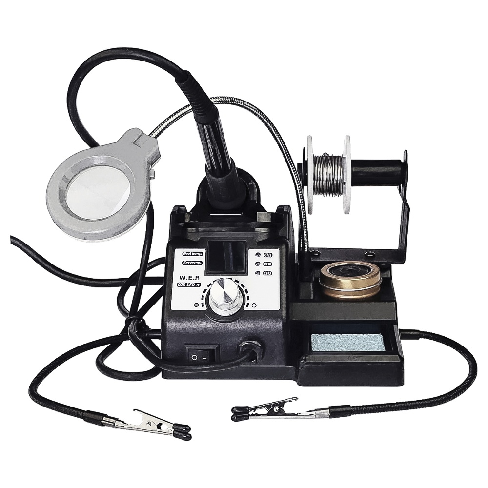 Паяльна станція WEP 926 LED-IV, паяльник, цифрова індикація, лупа, підсвічування, тримачі плат та припою, 60W, 90-400 гр C