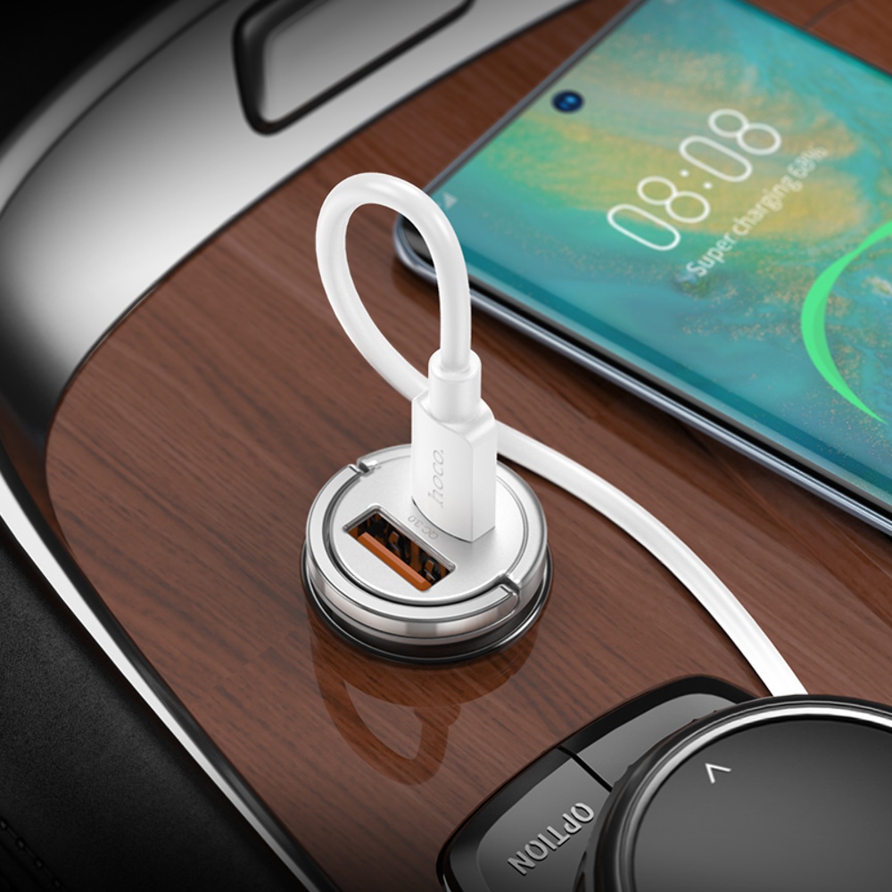 Авто Адаптер Hoco NZ10 USB/ Type-C PD 45W сріблястий + кабель Type-C to Type-C