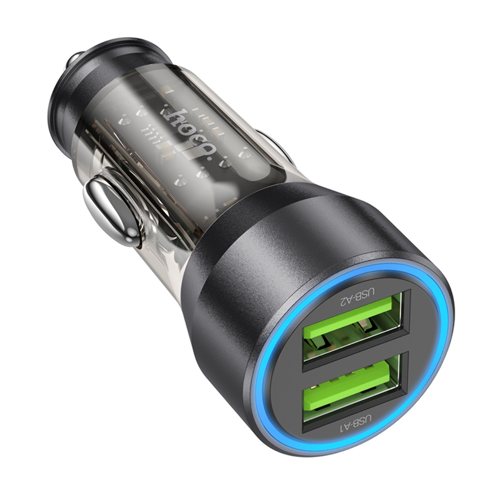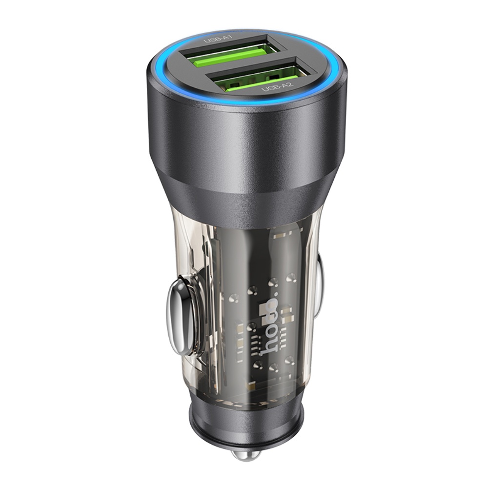 Авто Адаптер Hoco NZ12 2 USB QC 36W transparent black