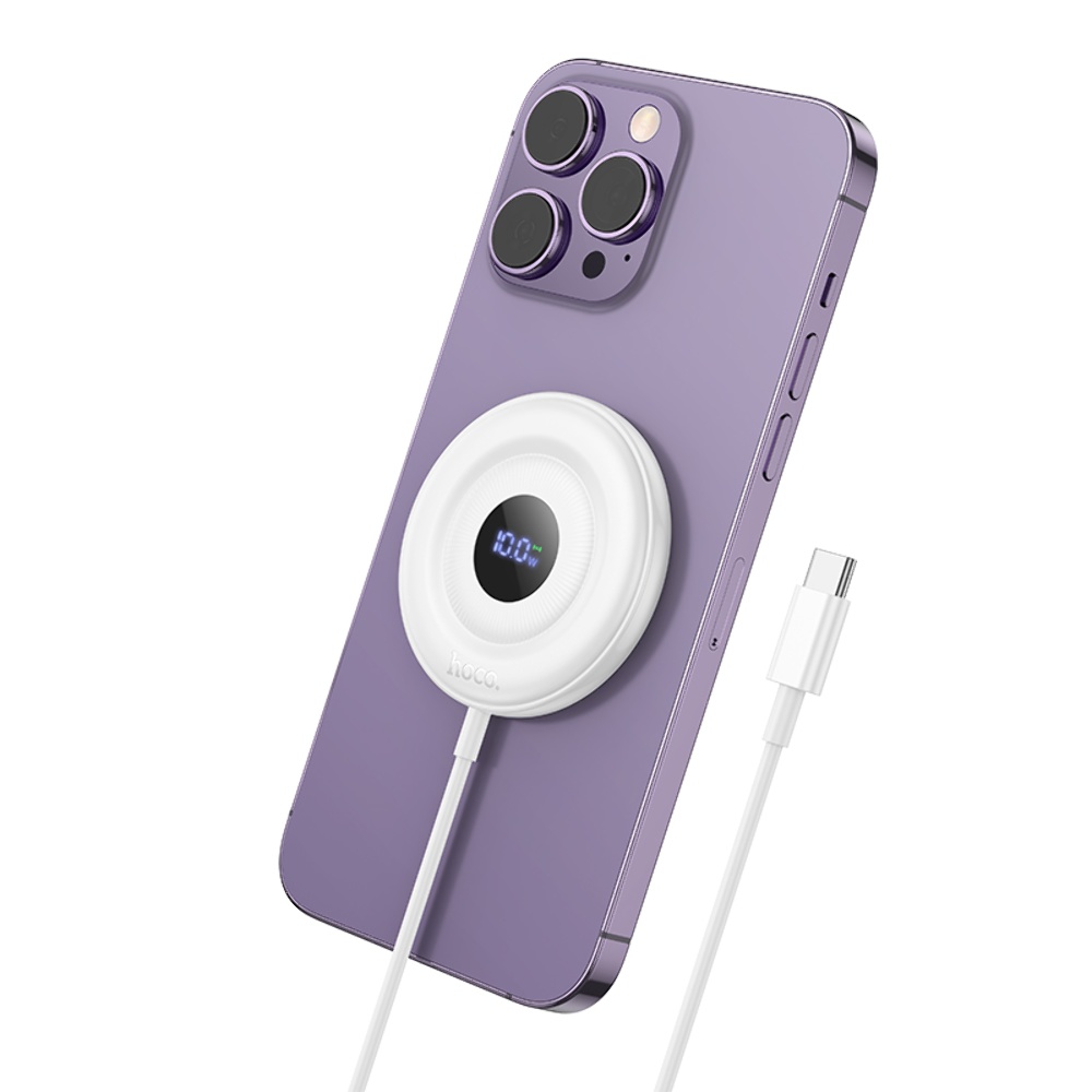 Бездротовий адаптер Hoco CW61 магнітне з цифровим дисплеєм white