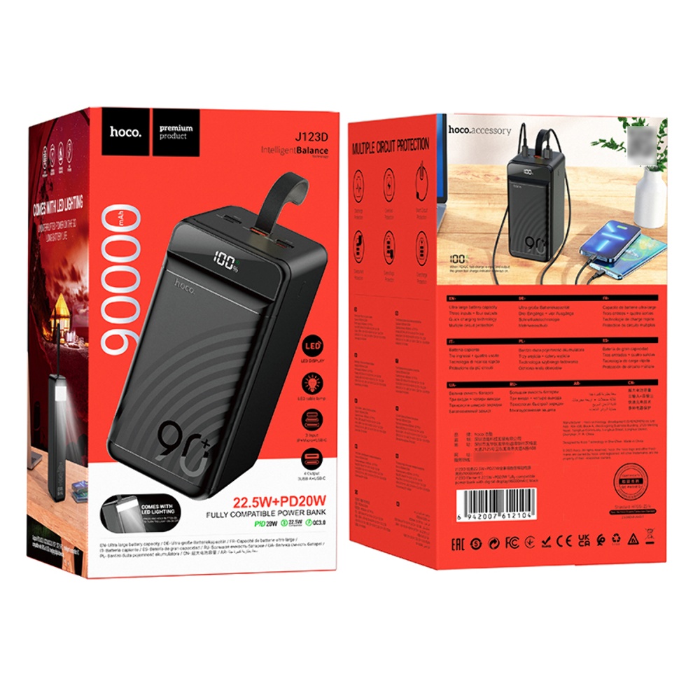 Power Bank Hoco 90000mAh Power Bank J123D 22.5W PD 20W з дисплеєм black