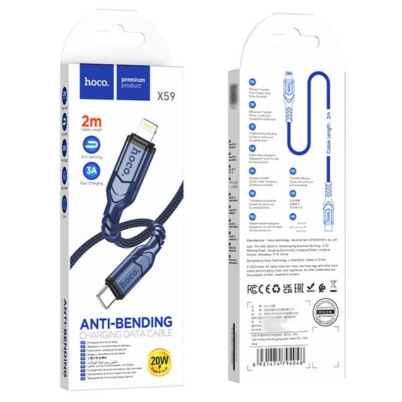 USB кабель Hoco X59 Type-C to Lightning 2m blue