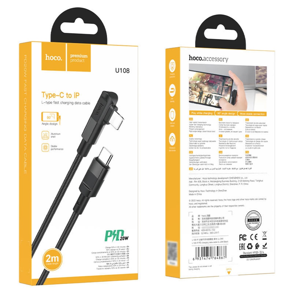 USB кабель Hoco U108 Type-C to Lightning PD 2m black