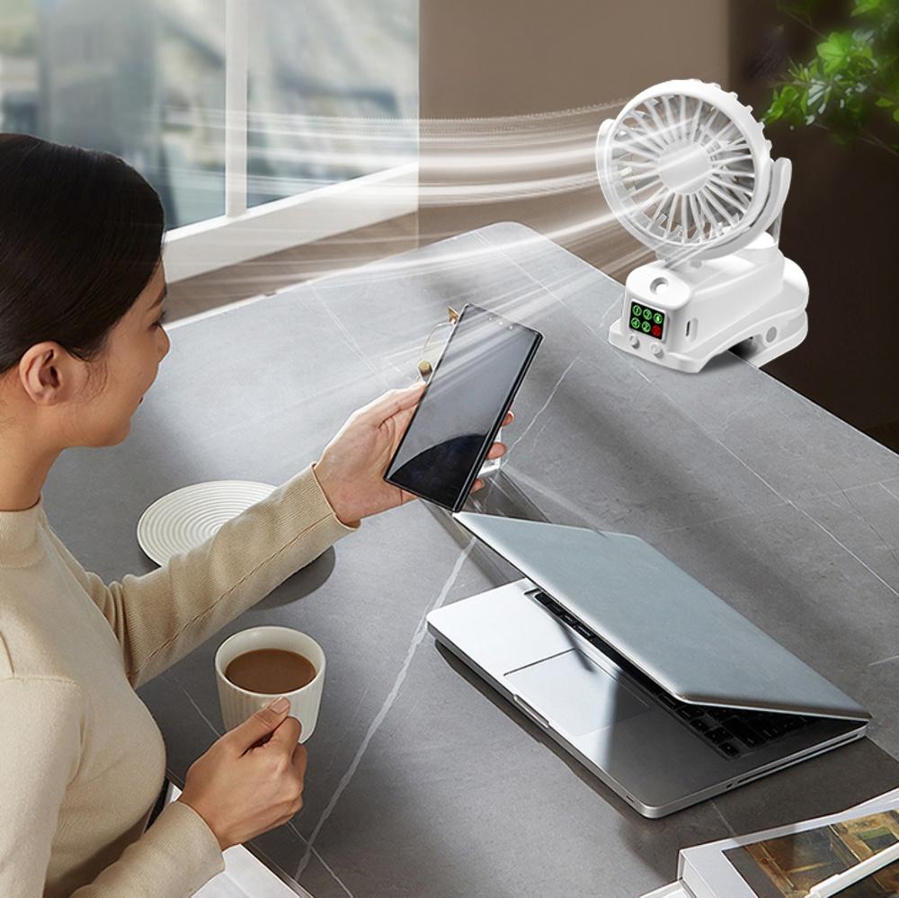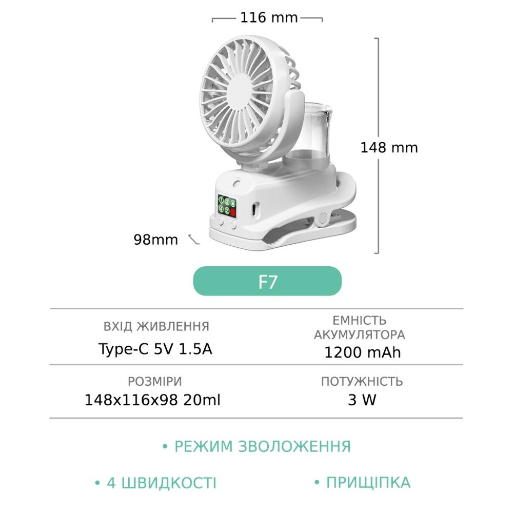 Настільний вентилятор F7 з функцією зволоження та прищіпкою white