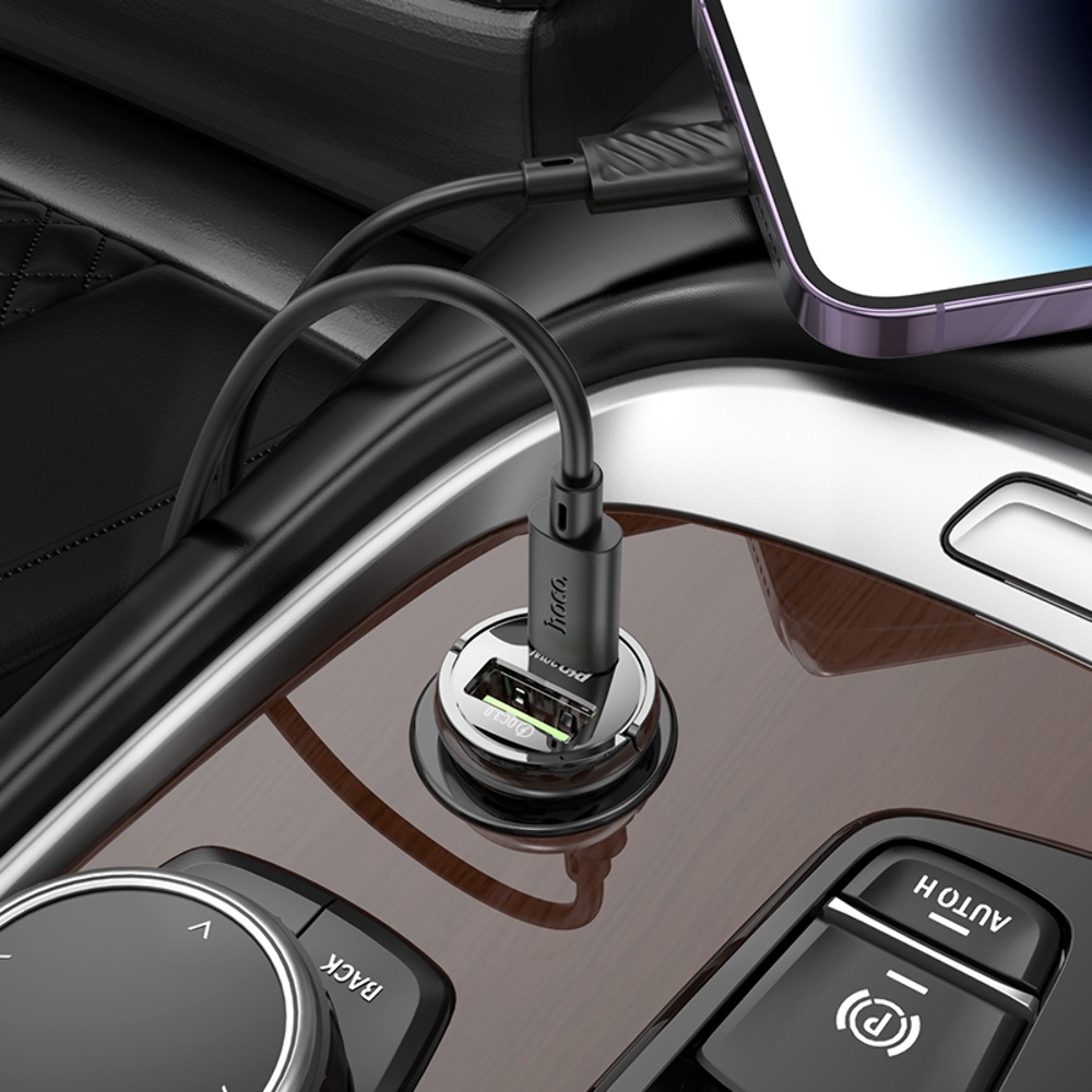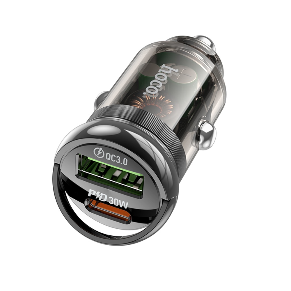 Авто Адаптер Hoco Z53A USB/ Type-C PD 30W QC transparent black
