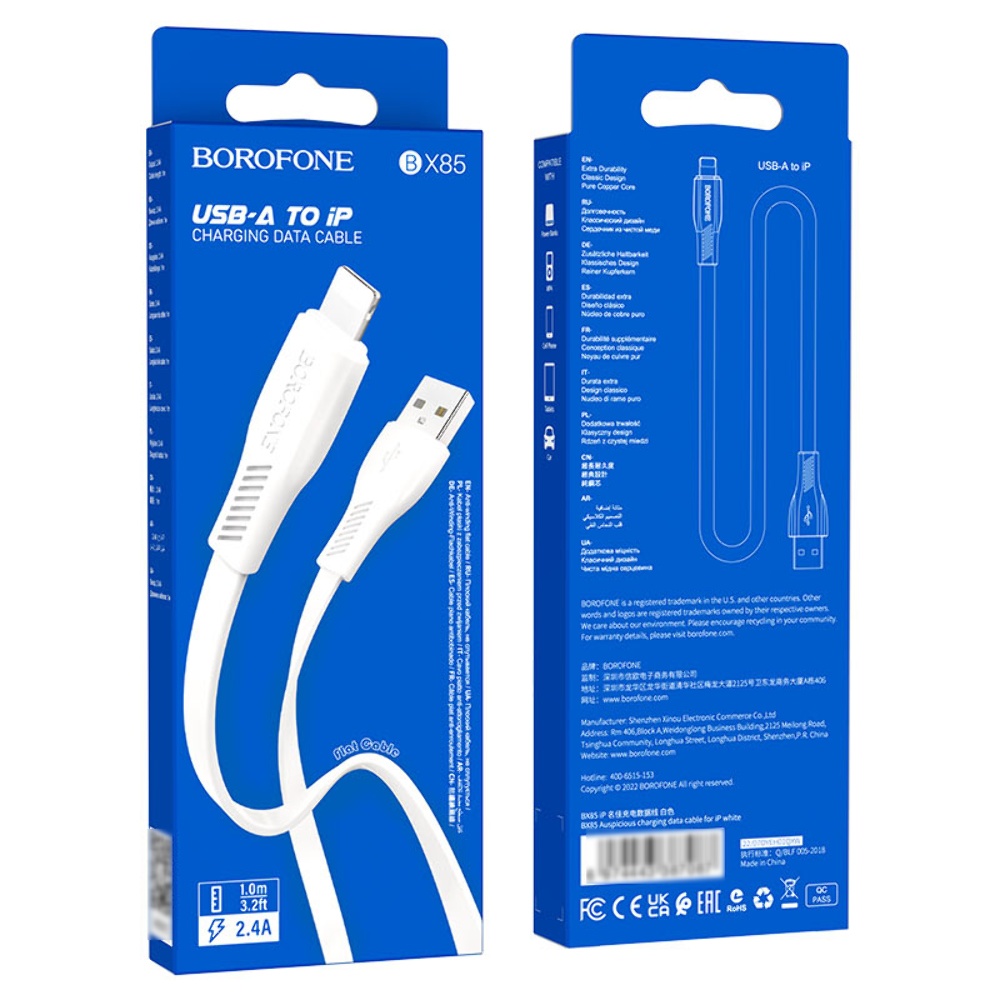 USB кабель Borofone BX85 USB to Lightning 1m white