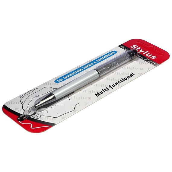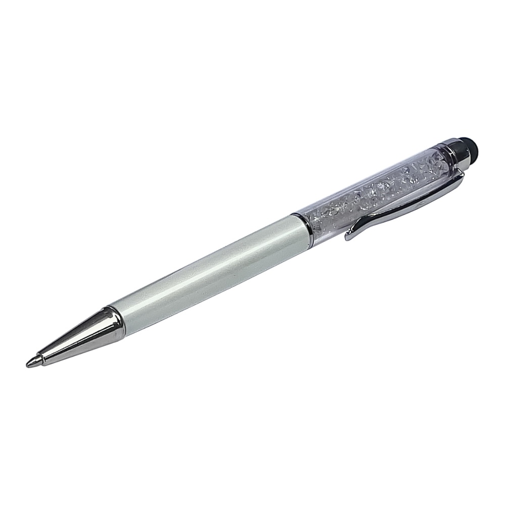 Стилус ёмкостный , с шариковой ручкой, металлический, белый с прозрачными кристаллами