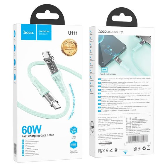 USB кабель Hoco U111 Type-C to Type-C PD 60W 1.2m green