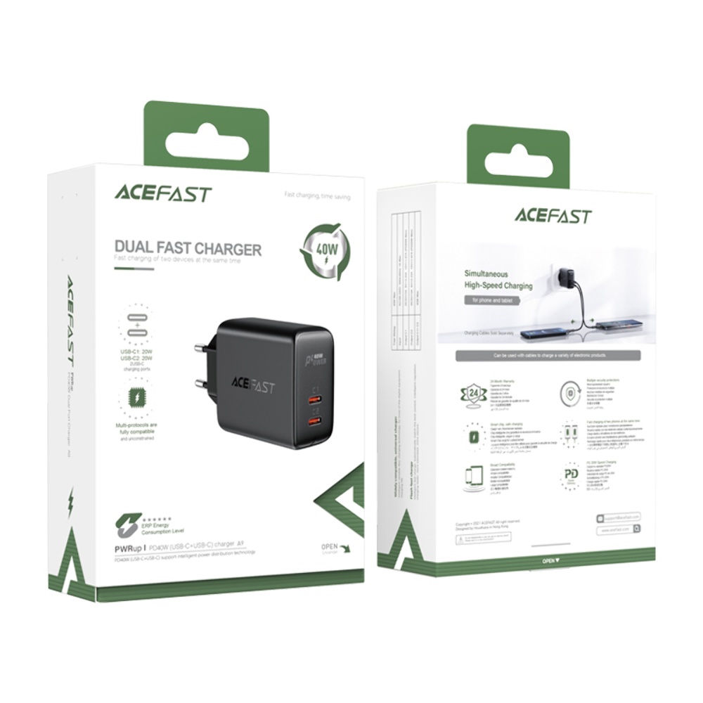 Сетевое зарядное устройство ACEFAST A9 2 Type-C 3A 40W PD QC чёрное