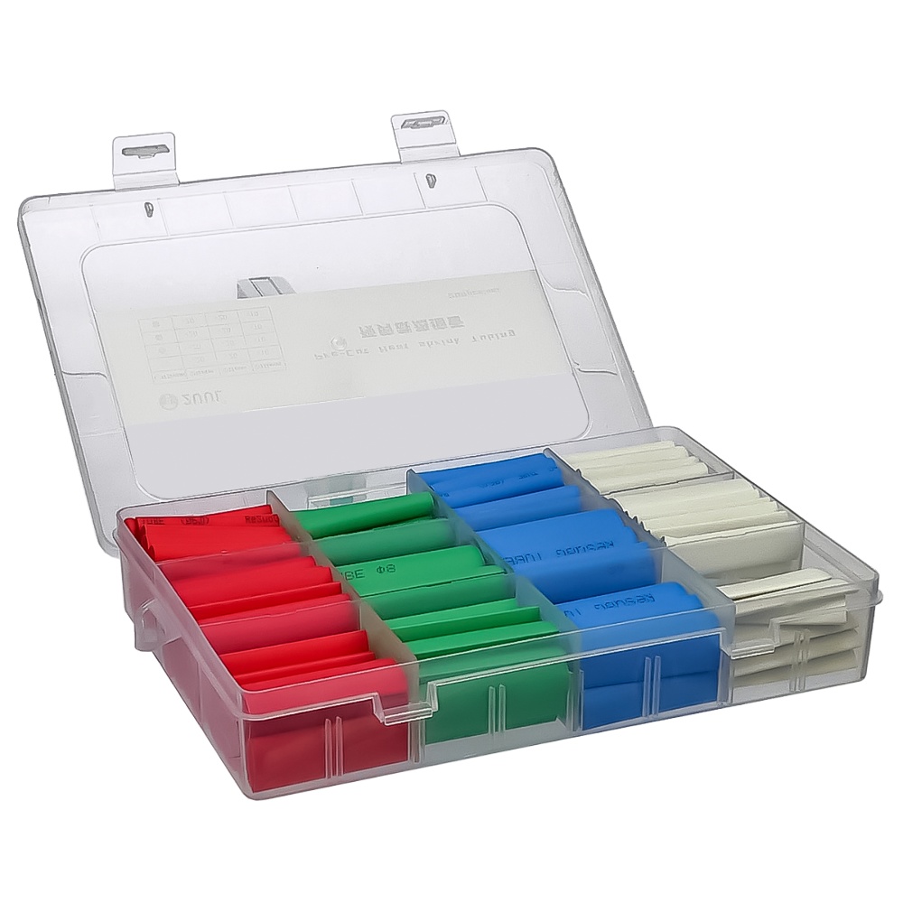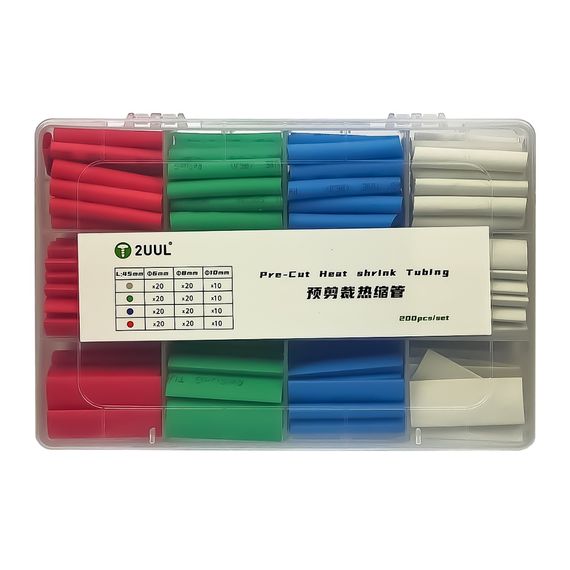 Набор термоусадочных трубок 2UUL 200 шт, 4 цвета, диаметр 6/8/10 мм в пластиковом боксе