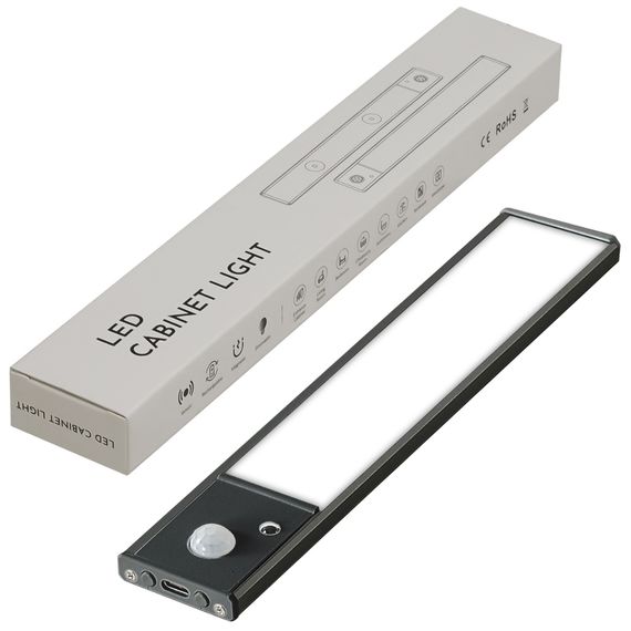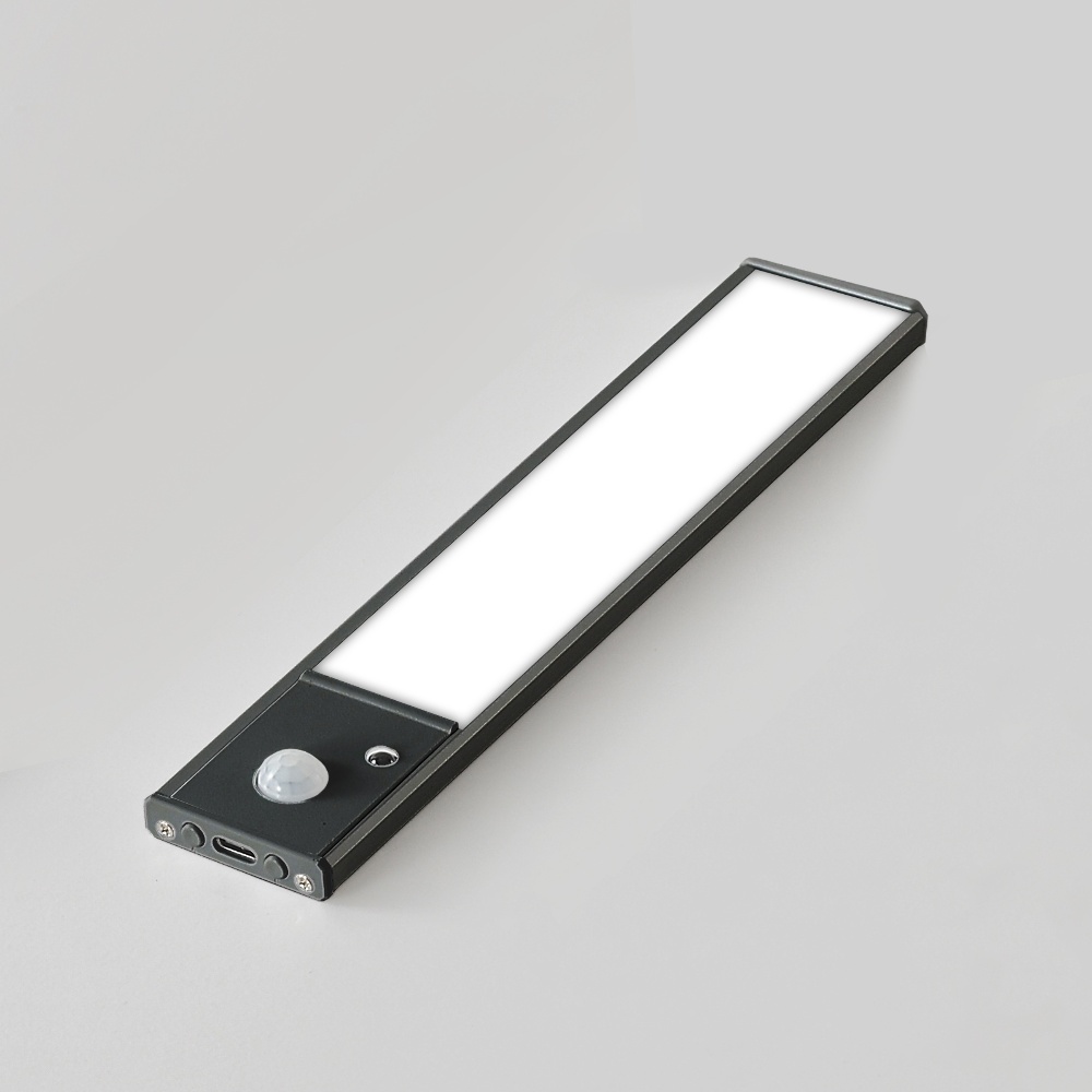 LED светильник 20-2B с датчиком движения и освещенности, аккумулятором, в алюминиевом корп. 20 см, 2w серебристая