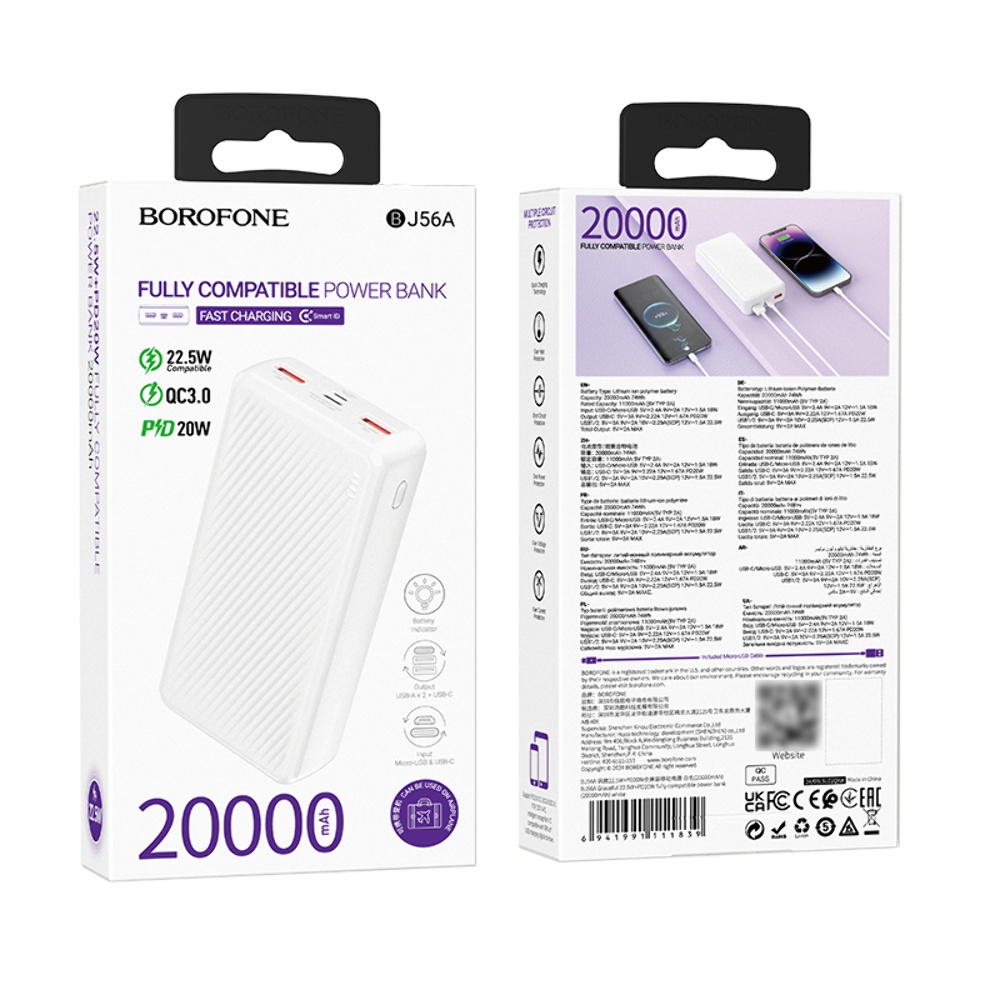 Power Bank Borofone 20000 mAh BJ56A 22.5W+PD20W белый