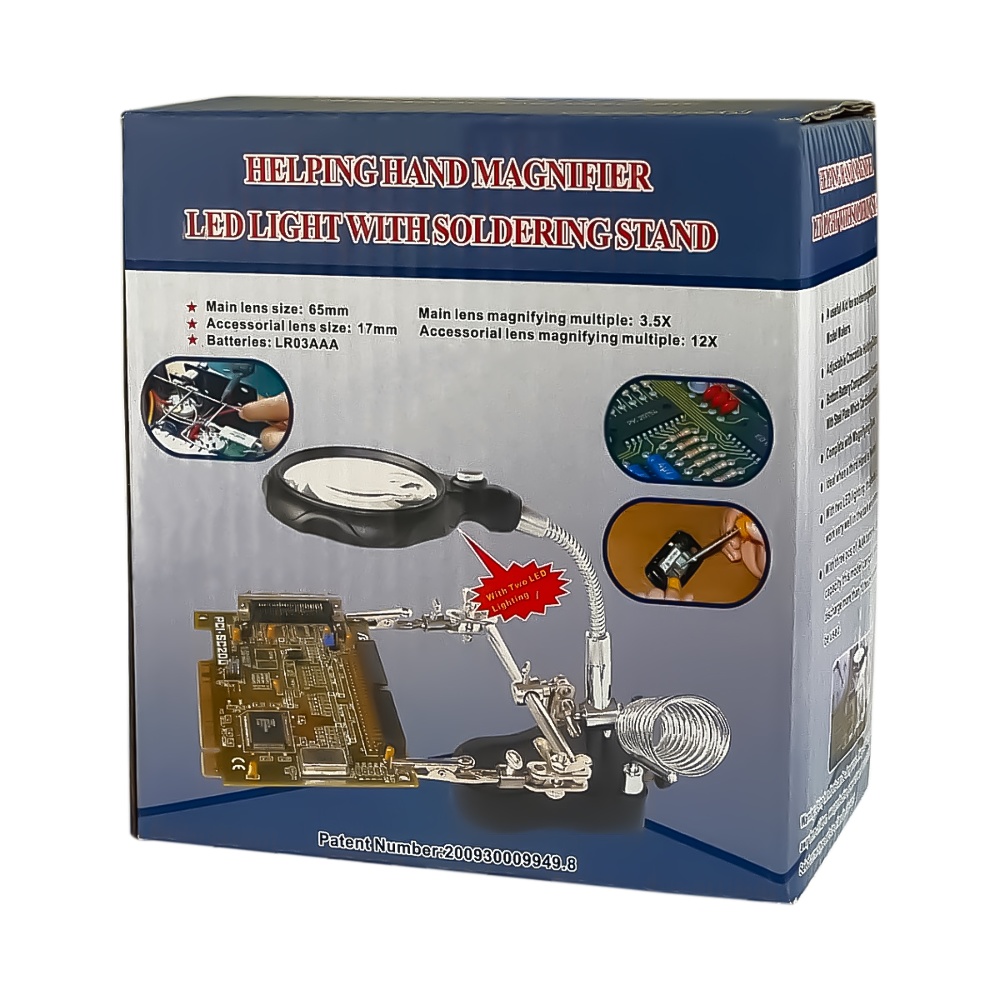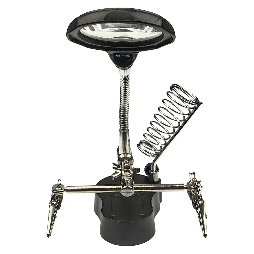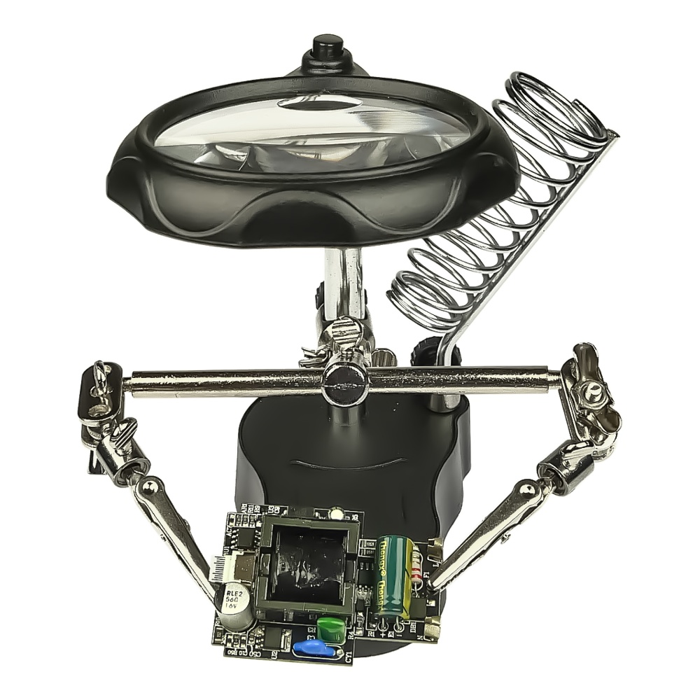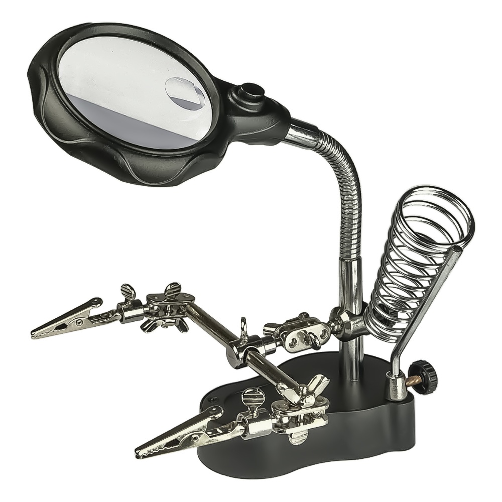 Держатель плат и паяльника MG16126-A с LED-подсветкой и двойной лупой (большая лупа d=65 мм, 3.5x; малая лупа d=17 мм, 12x)