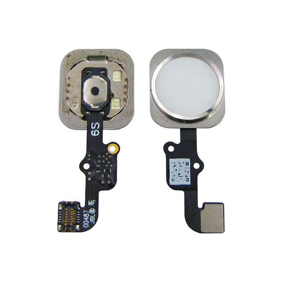 Шлейф для Apple iPhone 6S/ 6S Plus на кнопку HOME, з білою кнопкою та сріблястим обідком