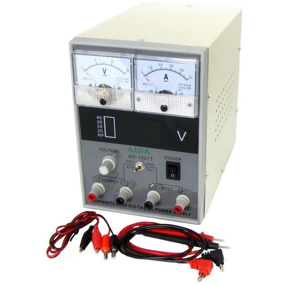 Лабораторний блок живлення Aida AD-1501T (15V 1A, цифрова/стрілочна індикація, RF індикатор, тестер, автовідновлення після КЗ)